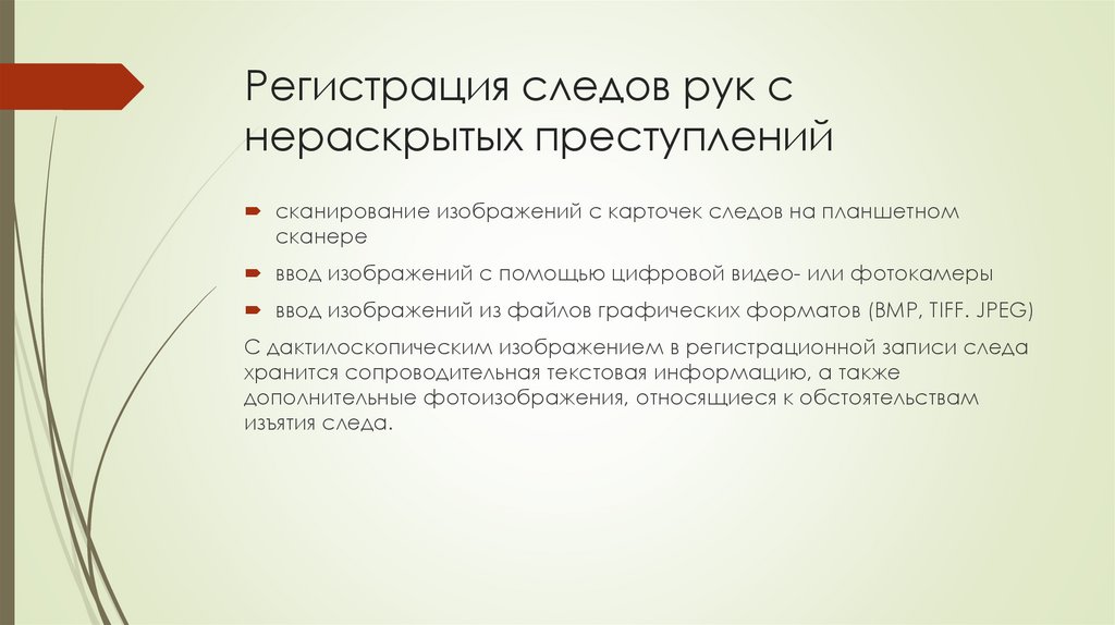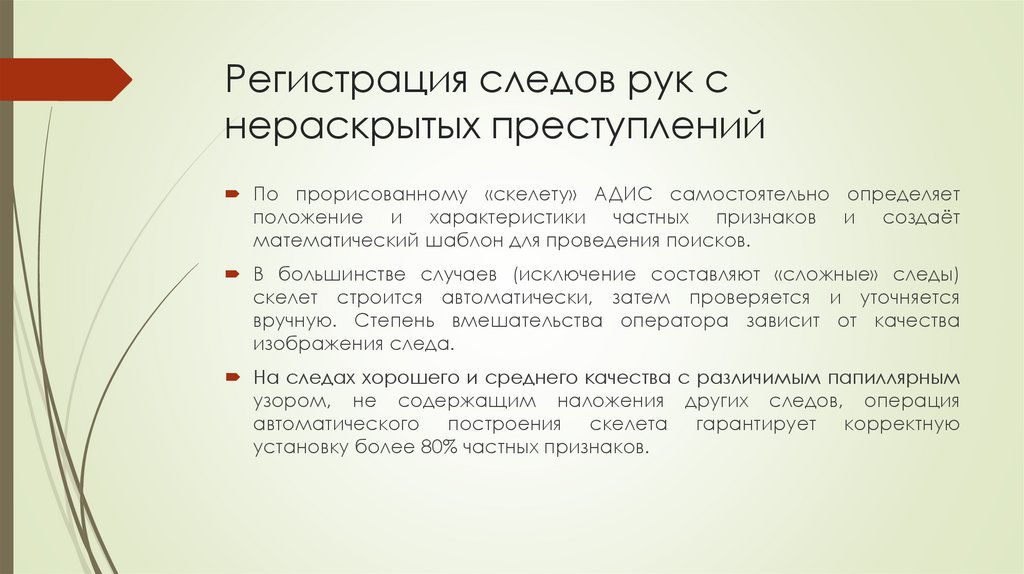 учет следов рук неустановленных лиц, изъятых с мест преступлений;