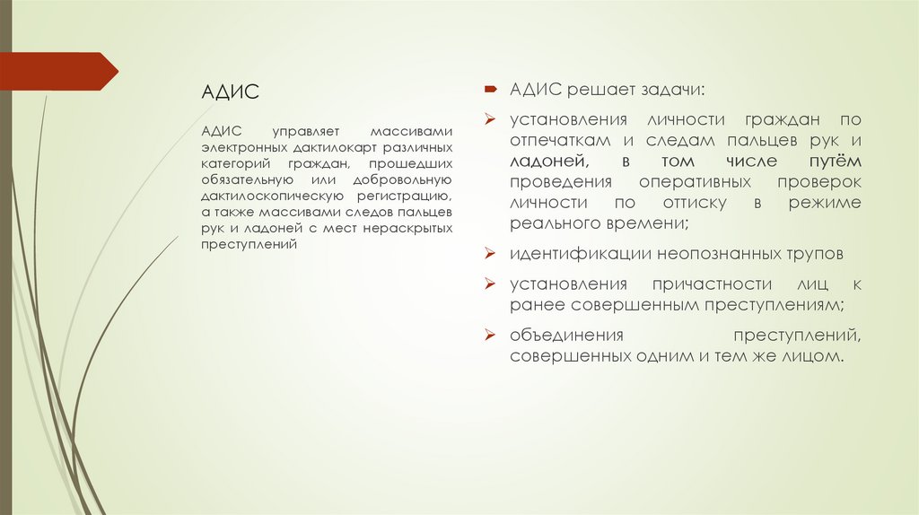 Интегрируемый в состав АДИС программный габитоскопический модуль обеспечивает