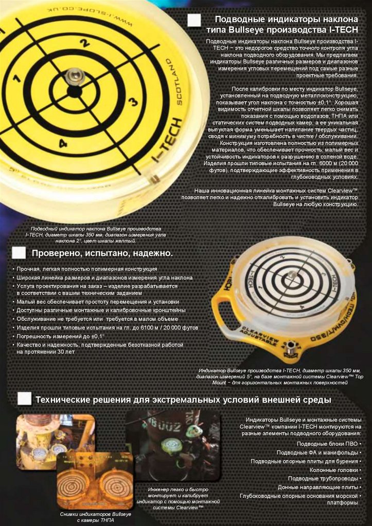 Подводные индикаторы наклона типа Bullseye производства I-TECH