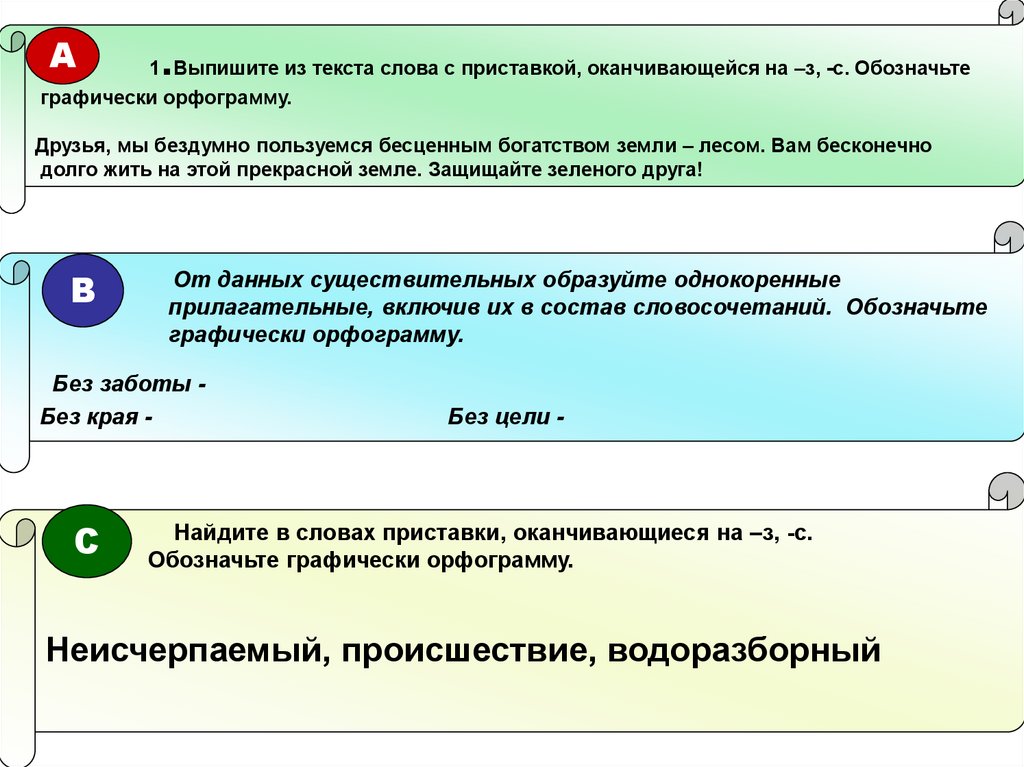 1 Выпишите из текста слова с приставкой, оканчивающейся на –з, -с. Обозначьте