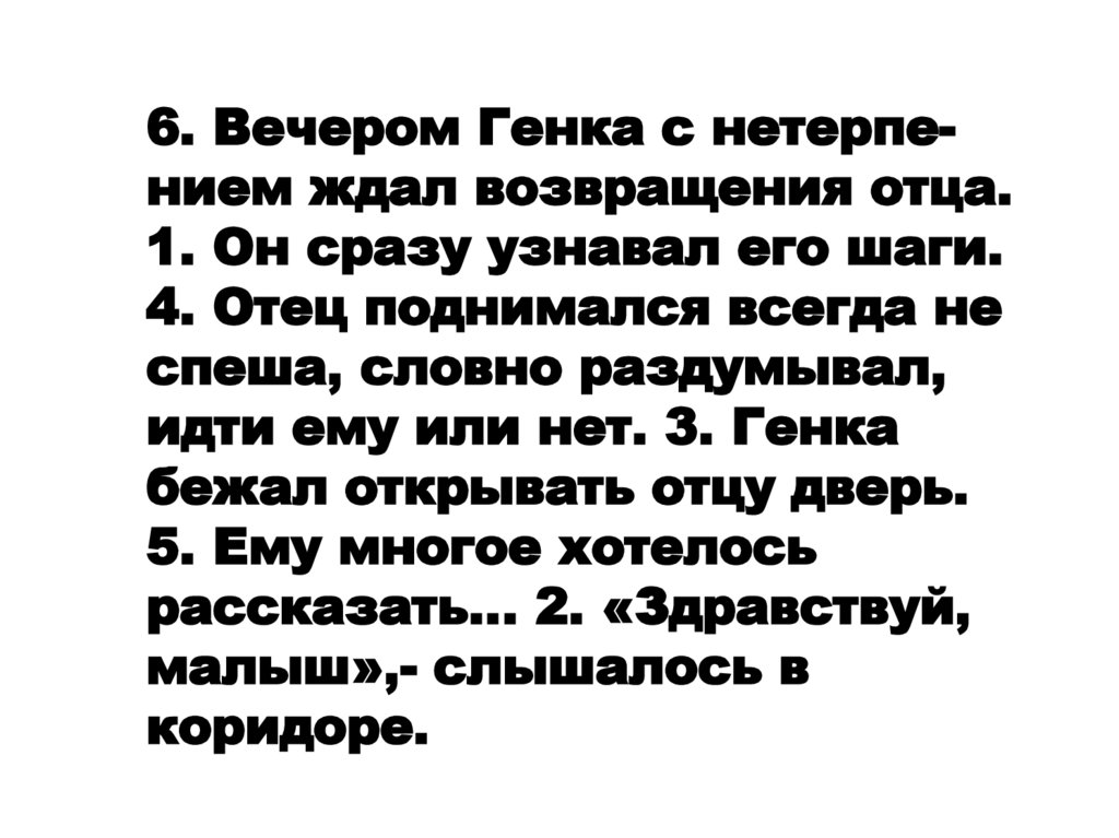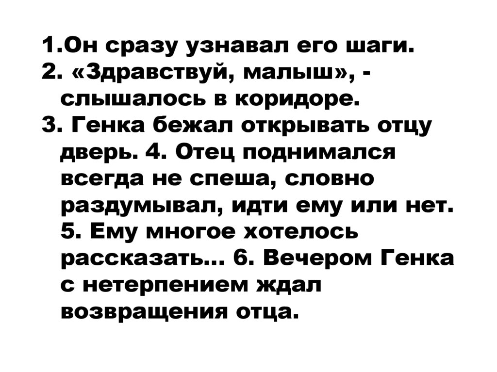 6. Вечером Генка с нетерпением ждал возвращения отца.1. Он сразу узнавал его шаги.
