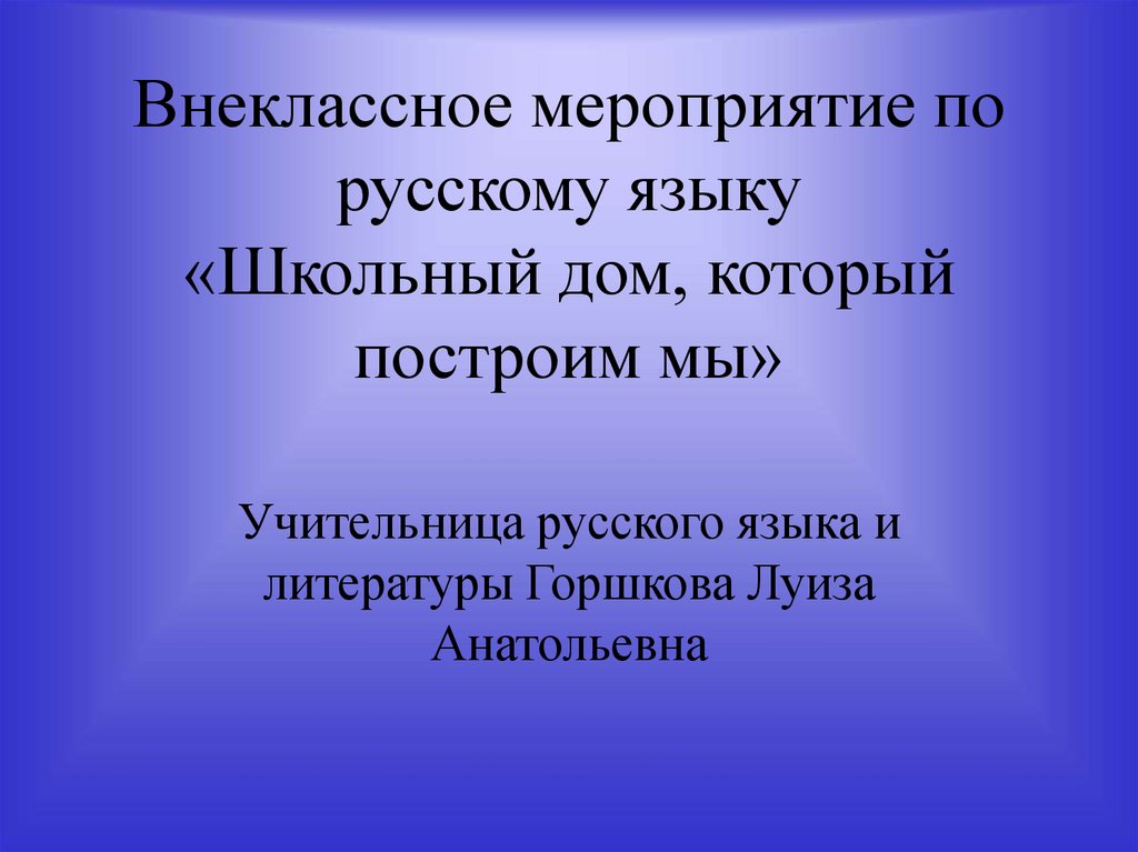 1. Внеклассное мероприятие по русскому языку «Школьный дом, который построим мы»