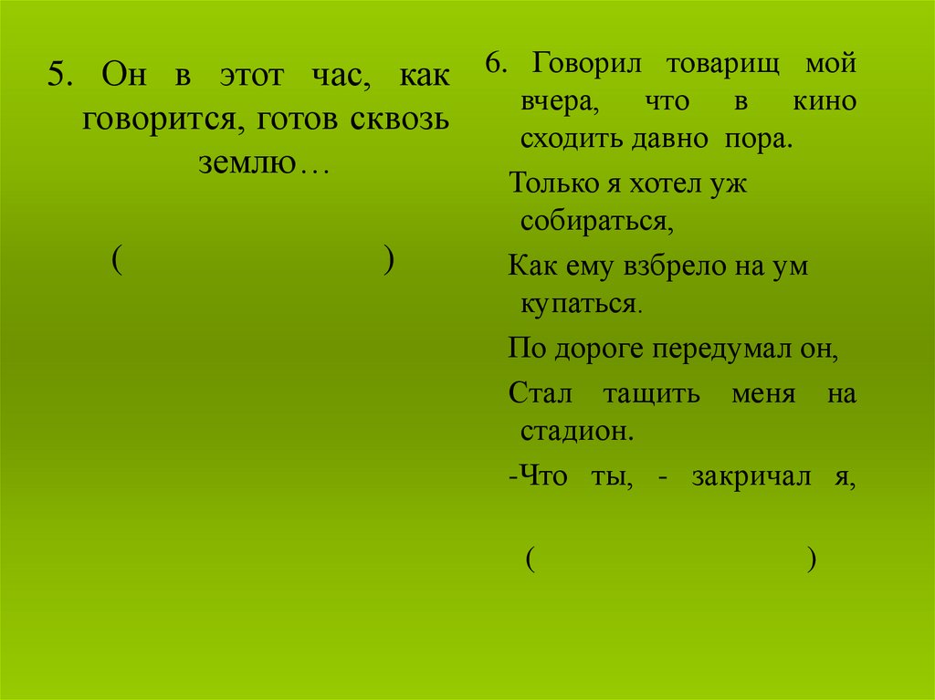 5. Он в этот час, как 6. Говорил товарищ мойвчера, что в кино