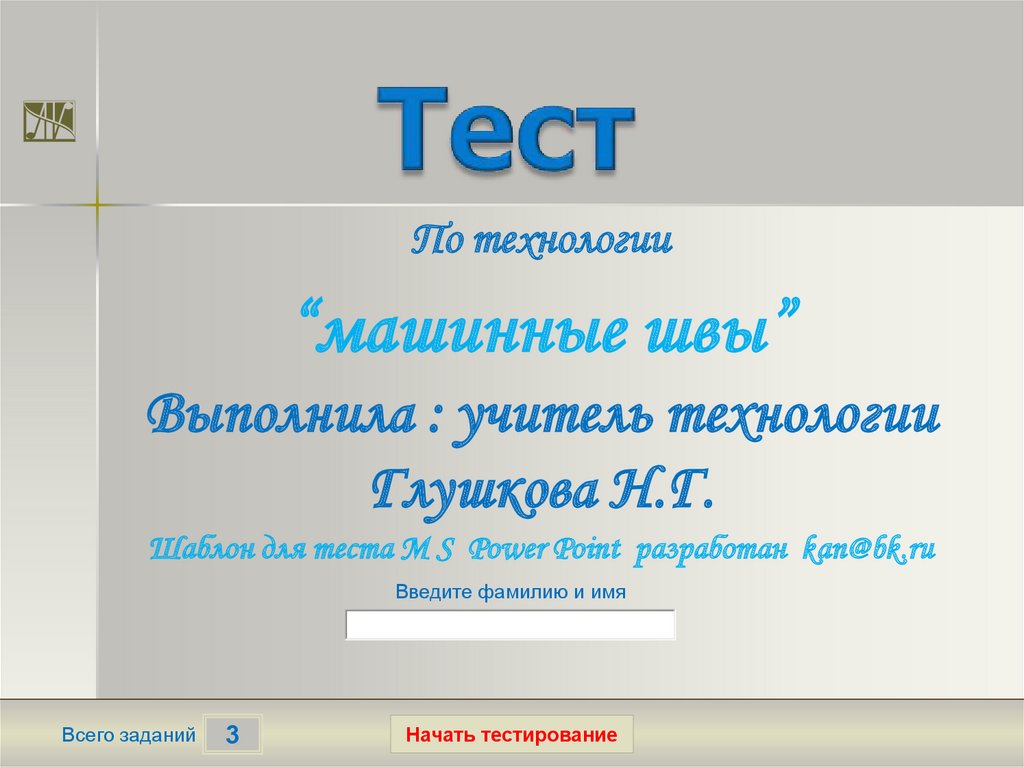 Шаблон для теста М S Power Point разработан kan@bk.ru
