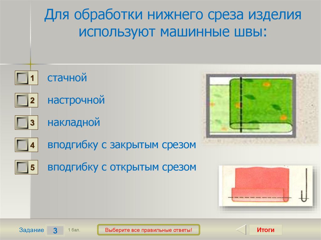 Для обработки нижнего среза изделияиспользуют машинные швы: