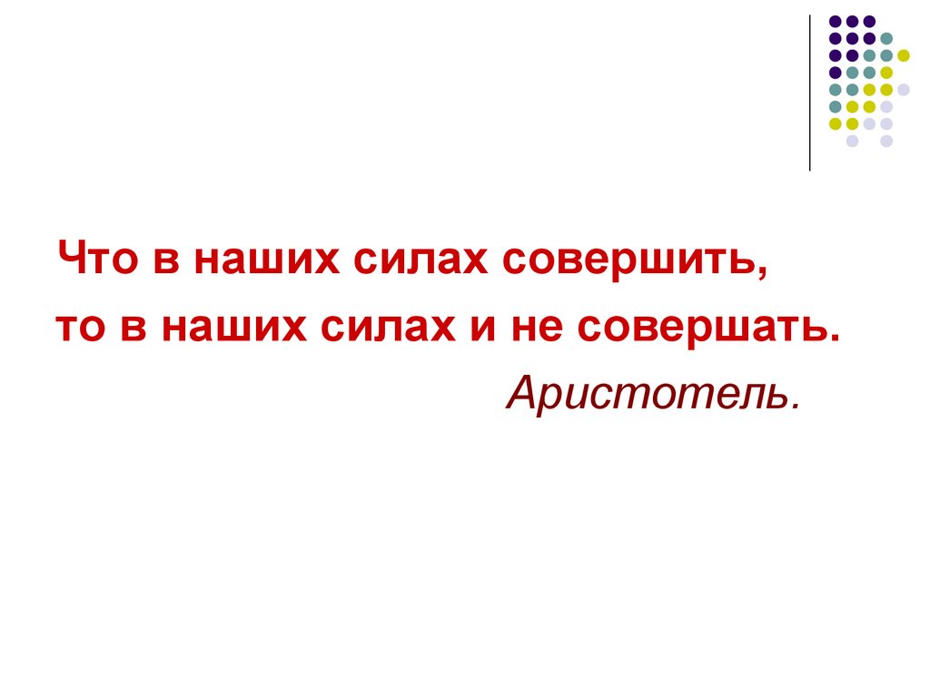 Что в наших силах совершить,то в наших силах и не совершать.