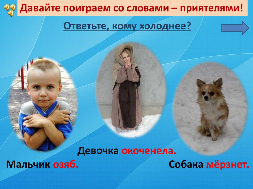Давайте поиграем со словами – приятелями!Ответьте, кому холоднее?