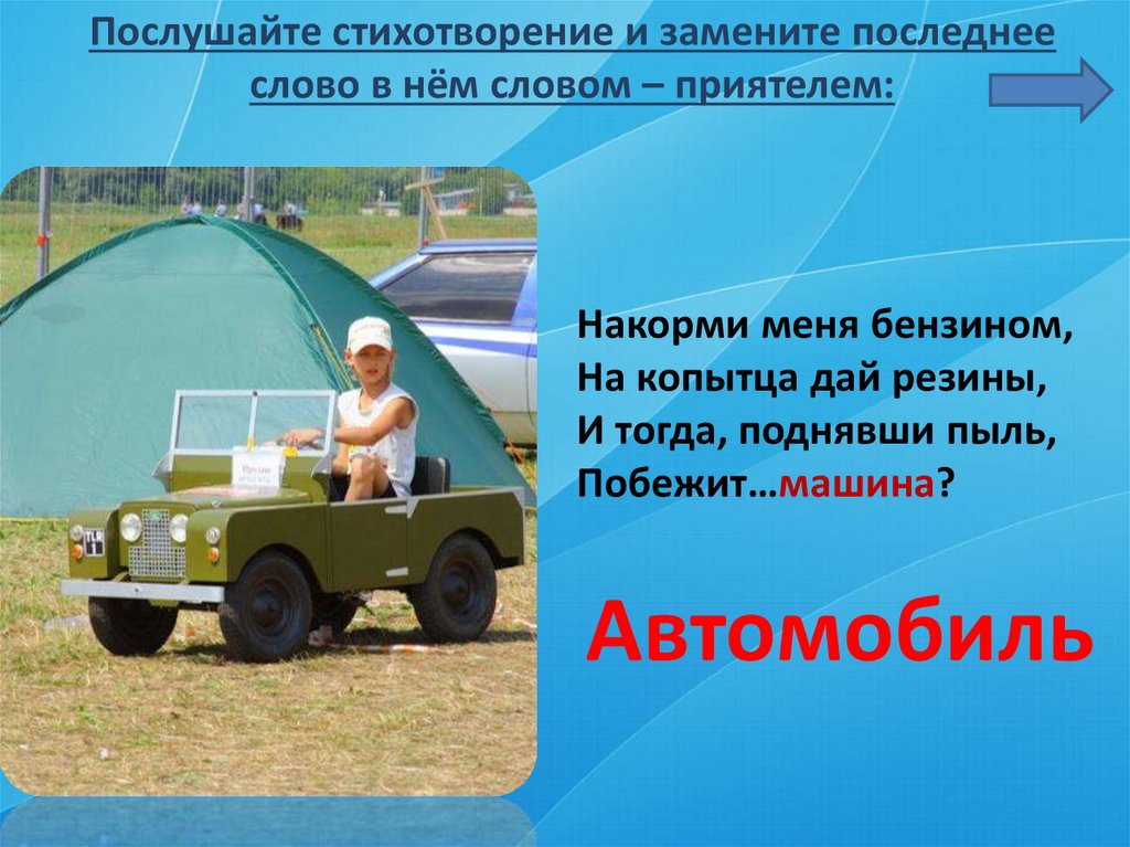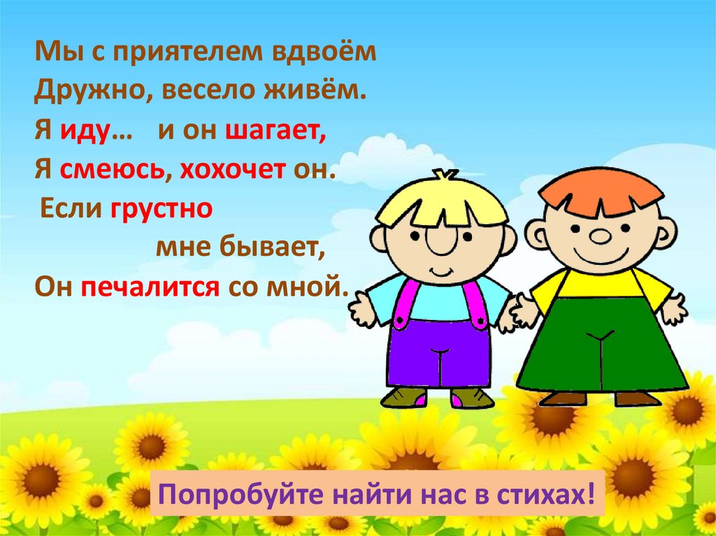 Послушайте стихотворение и замените последнееслово в нём словом – приятелем:
