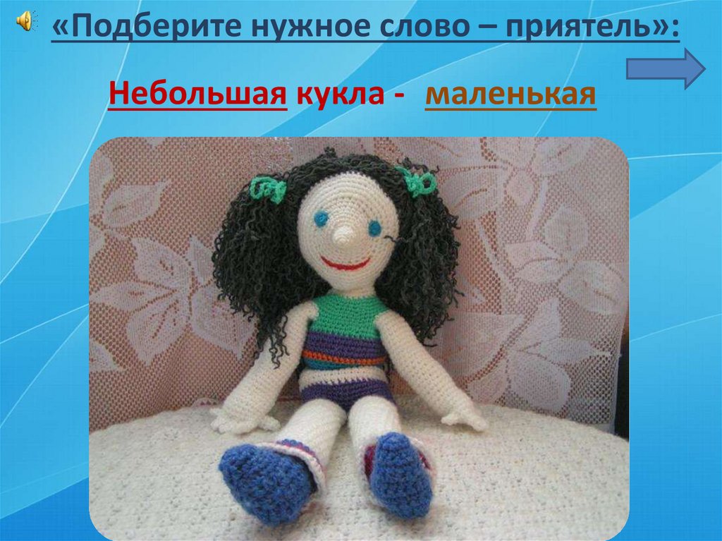 «Подберите нужное слово – приятель»:Небольшая кукла - маленькая