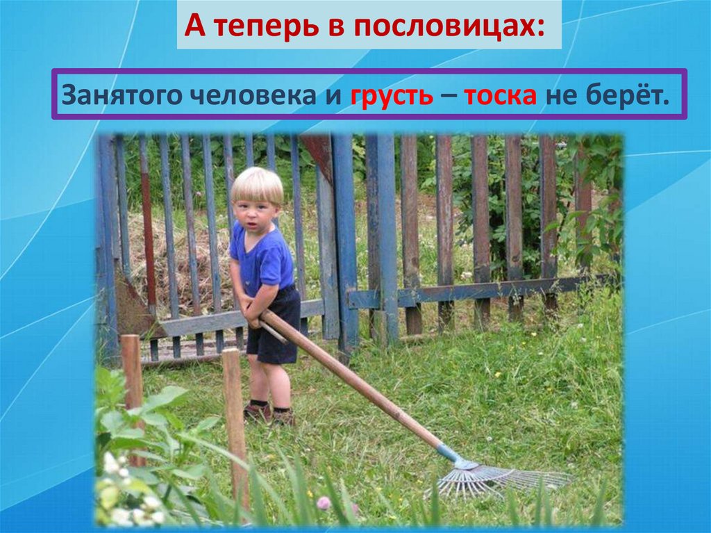 А теперь в пословицах:Занятого человека и грусть – тоска не берёт.