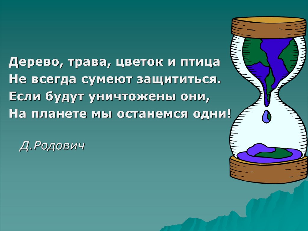 Дерево, трава, цветок и птицаНе всегда сумеют защититься.