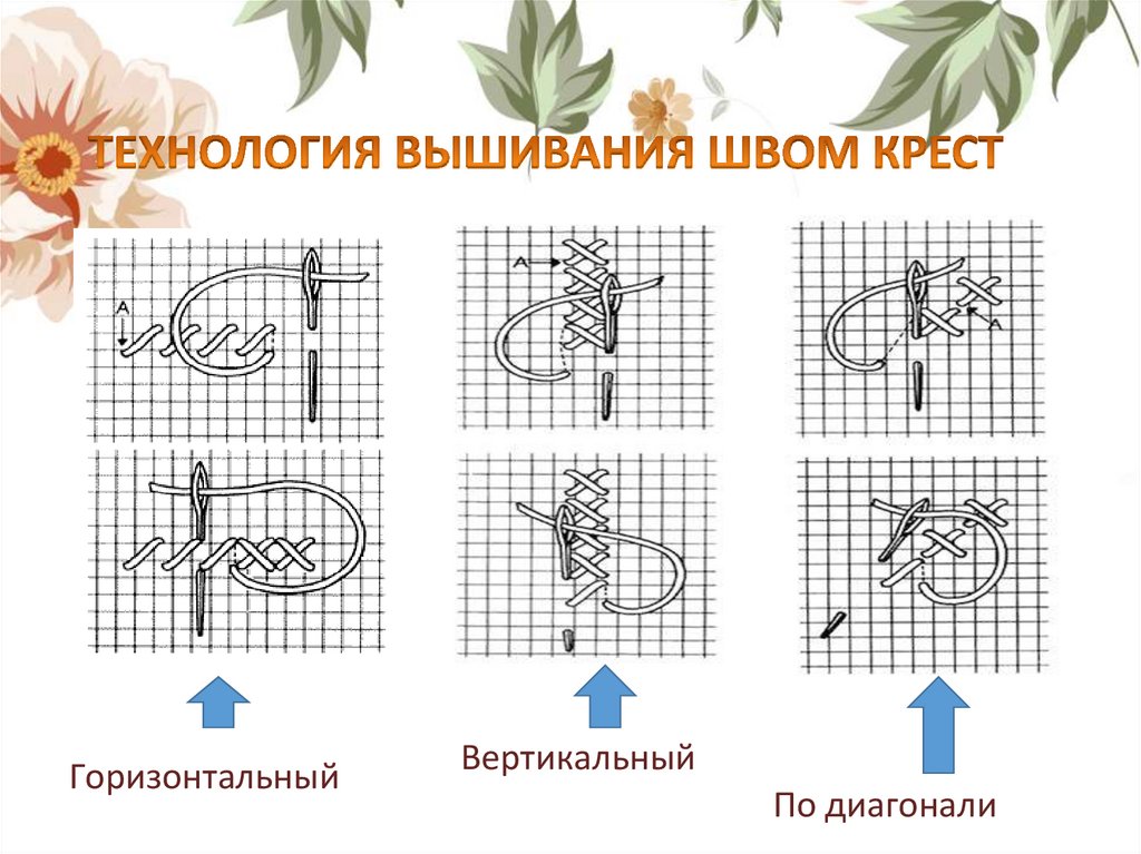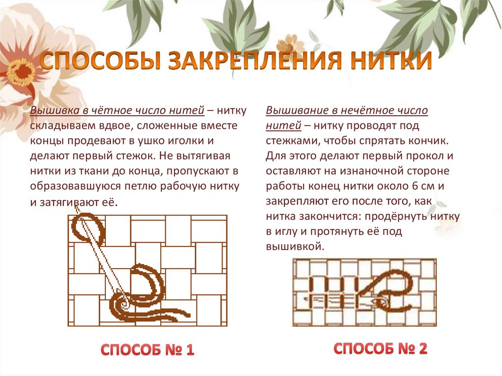 Вышивка в чётное число нитей – ниткускладываем вдвое, сложенные вместе