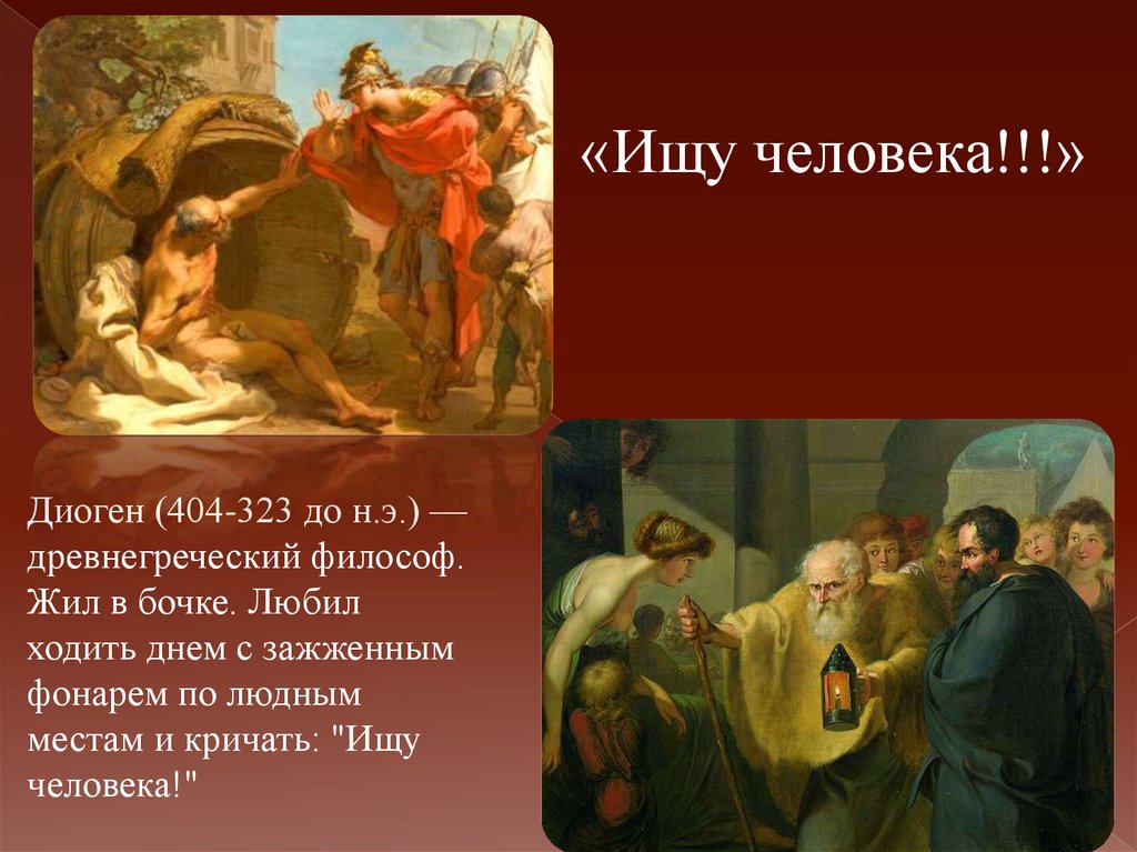 «Ищу человека!!!»Диоген (404-323 до н.э.) —