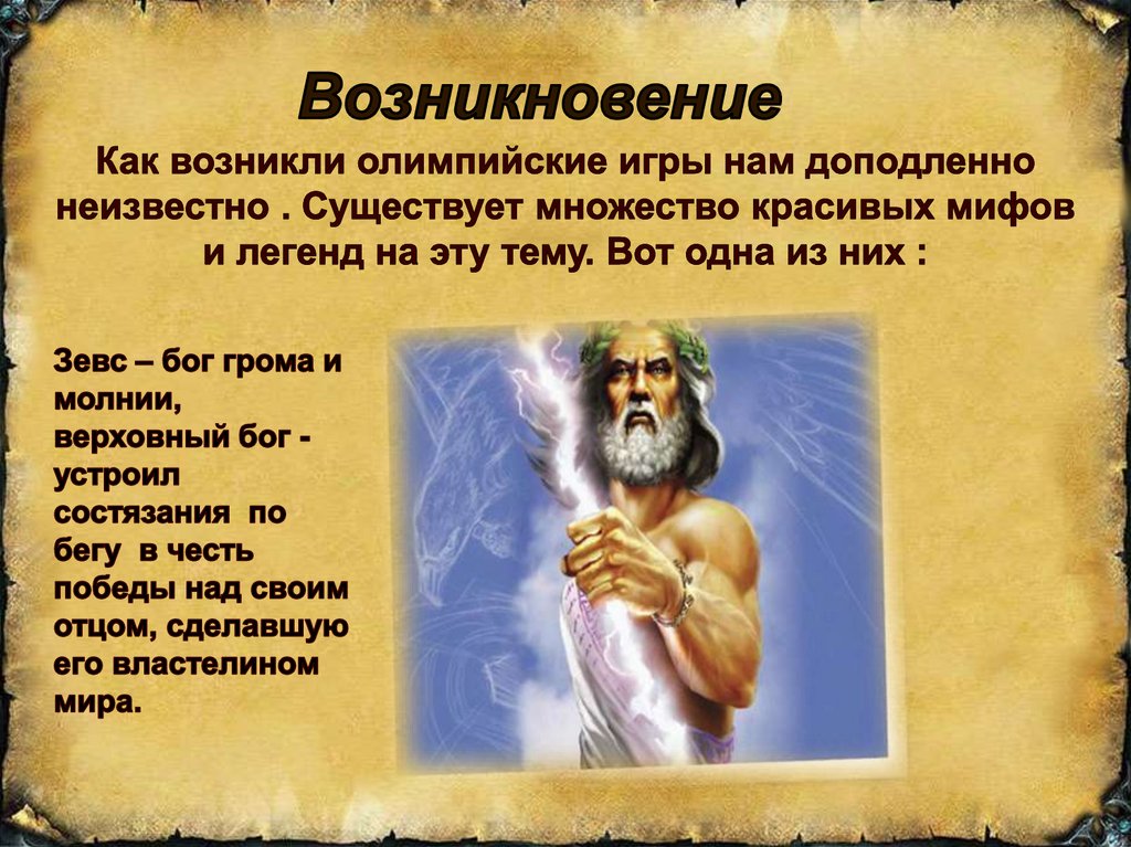 Олимпийские игры. Возникновение Олимпийских игр