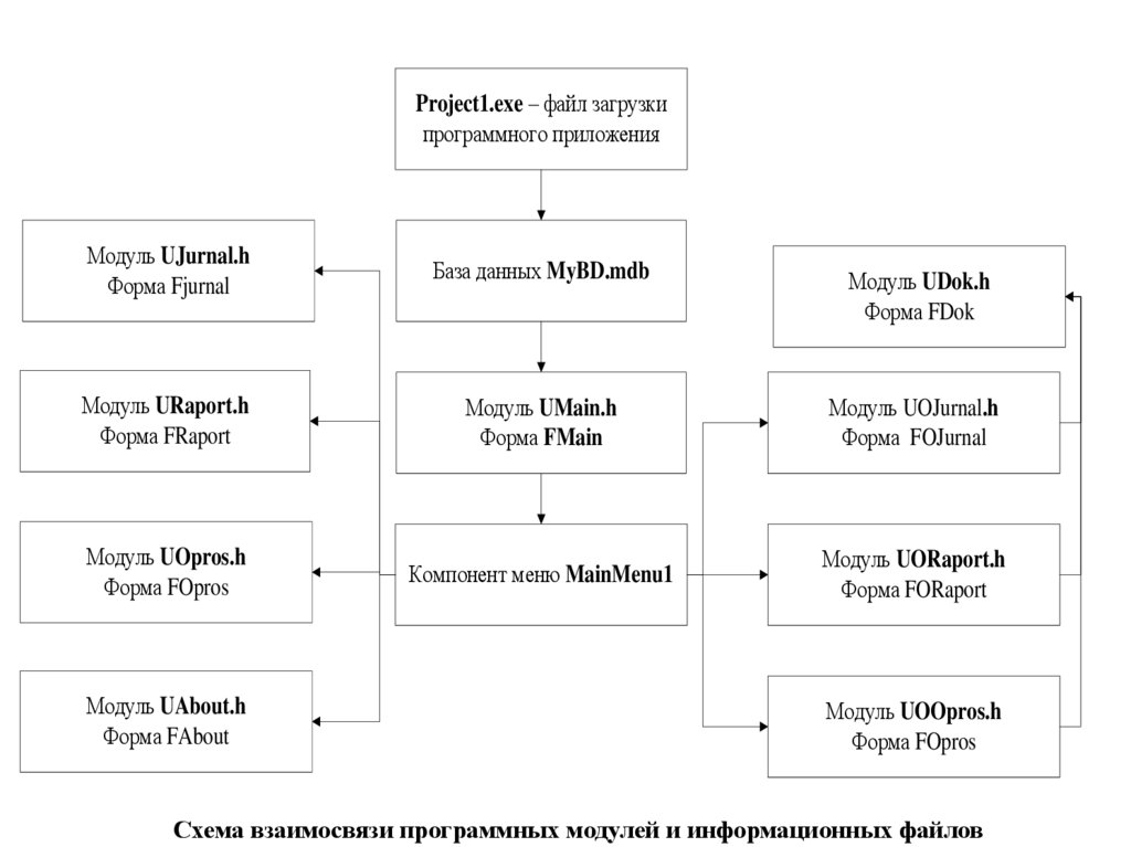 Схема взаимосвязи программных модулей и информационных файлов
