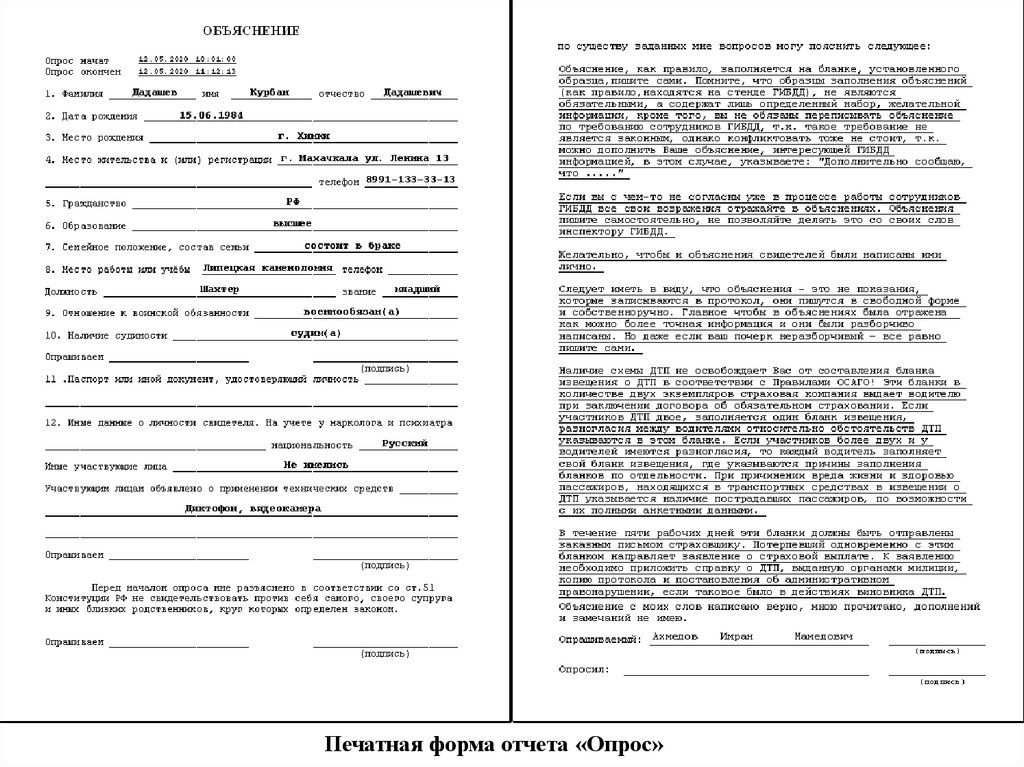 Печатная форма отчета «Рапорт»