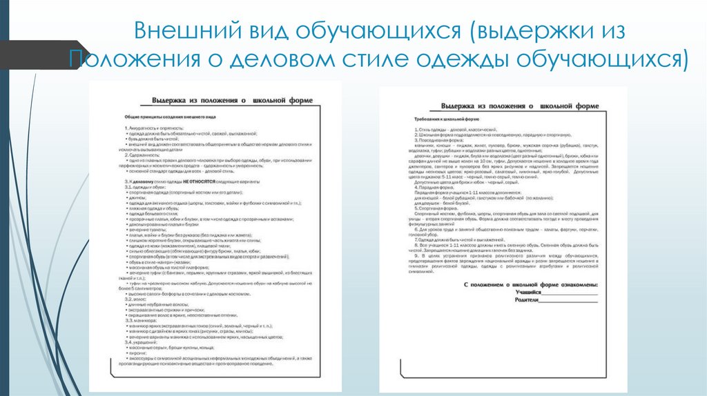 Внешний вид обучающихся (выдержки изПоложения о деловом стиле одежды обучающихся)