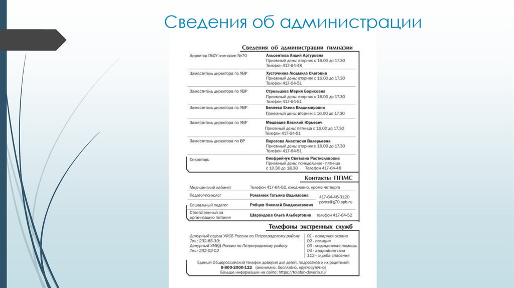 Сведения об администрации7.