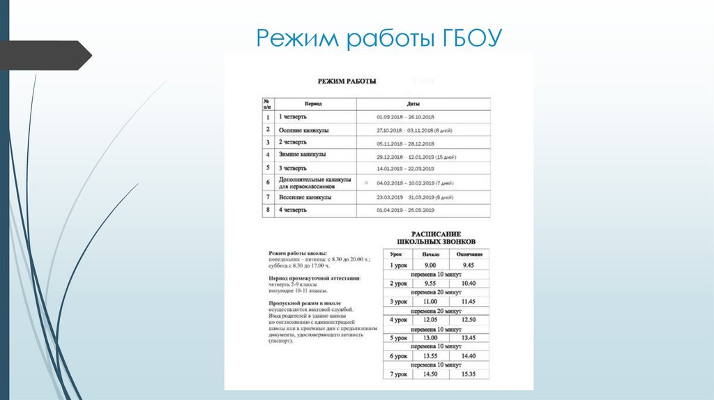 Режим работы ГБОУ8.