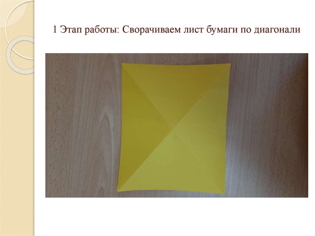 1 Этап работы: Сворачиваем лист бумаги по диагонали4.