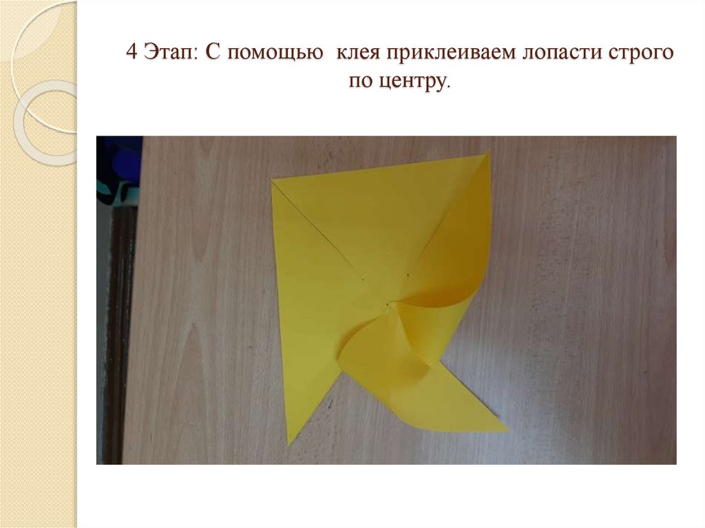 4 Этап: С помощью клея приклеиваем лопасти строгопо центру.