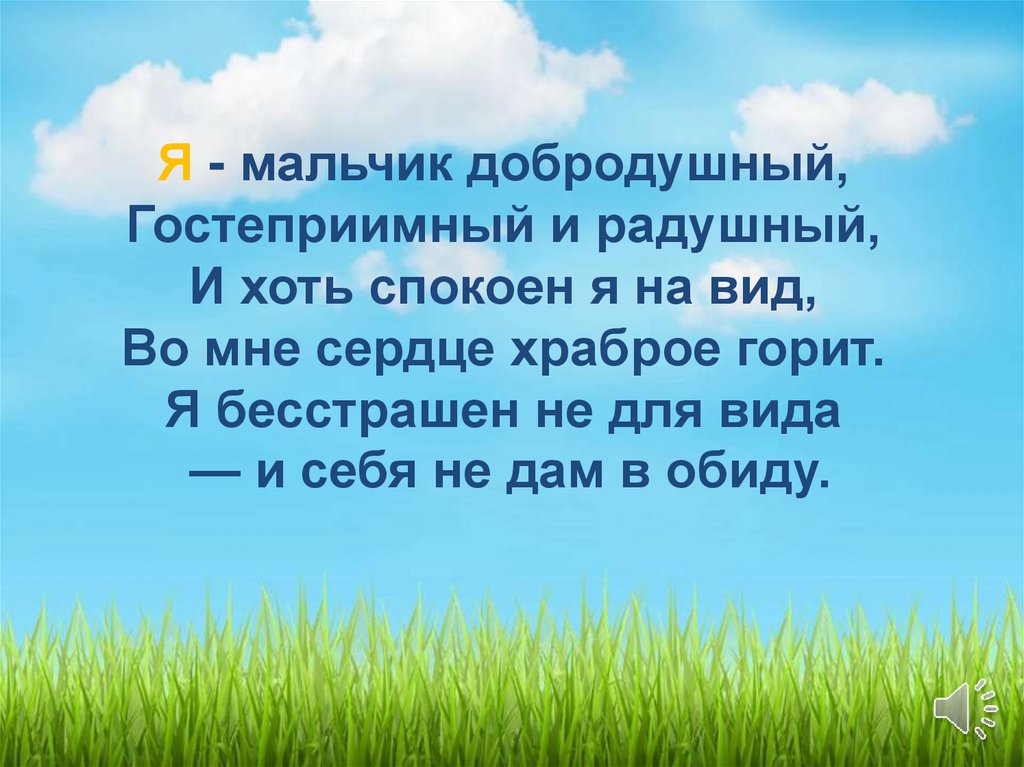 Я - мальчик добродушный,Гостеприимный и радушный,