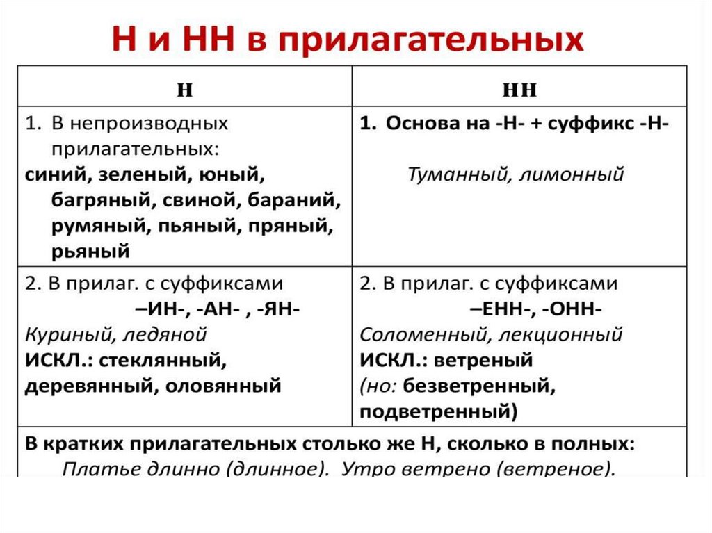 Н и НН в разных частях речи