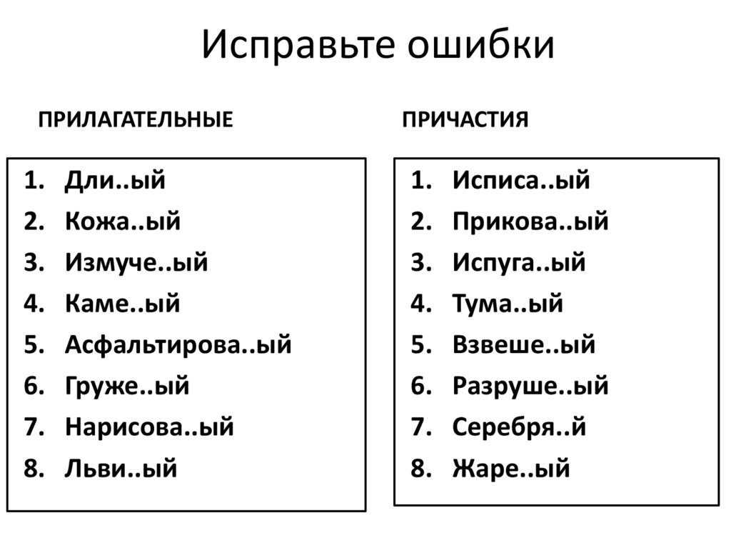 Исправьте ошибкиПРИЛАГАТЕЛЬНЫЕ