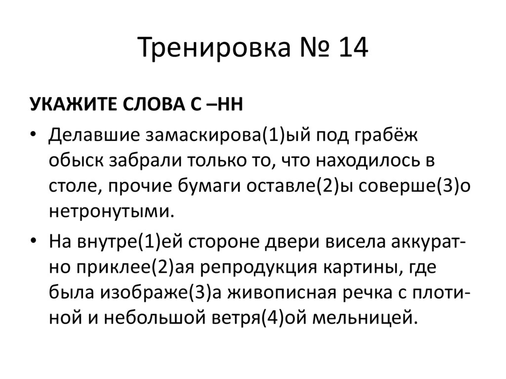 Тренировка № 14УКАЖИТЕ СЛОВА С –НН