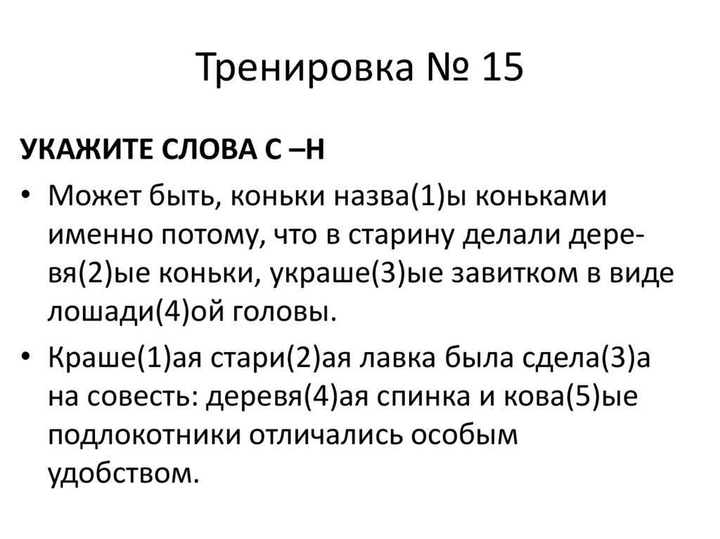 Тренировка № 15УКАЖИТЕ СЛОВА С –Н