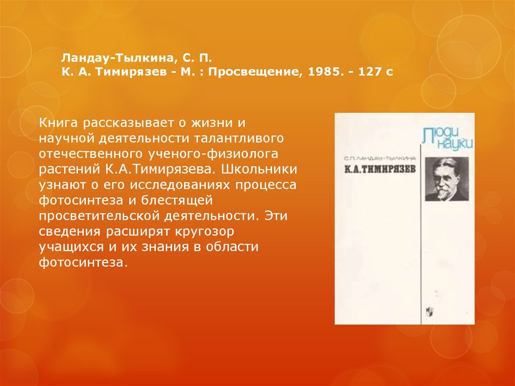 Ландау-Тылкина, С. П.К. А. Тимирязев - М. : Просвещение, 1985. - 127 с