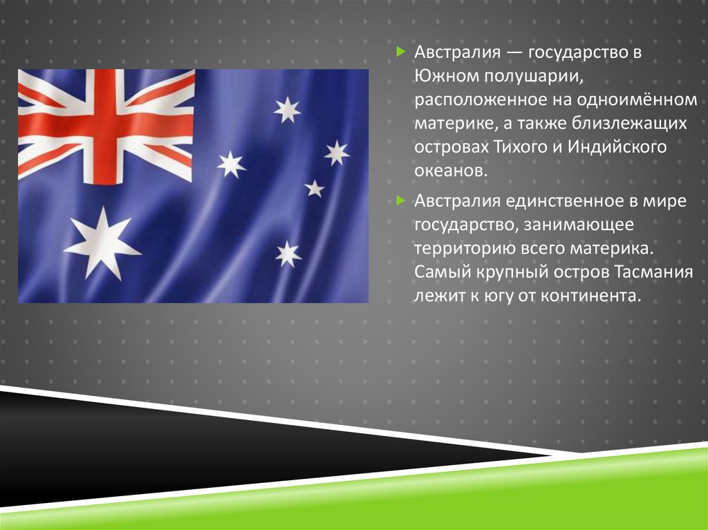 Австралия — государство вЮжном полушарии,