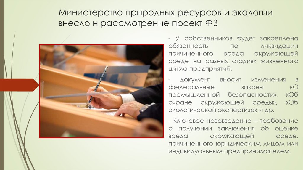 Министерство природных ресурсов и экологиивнесло н рассмотрение проект ФЗ