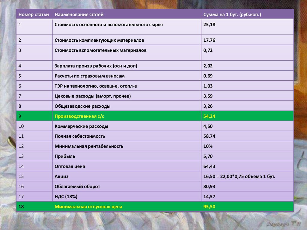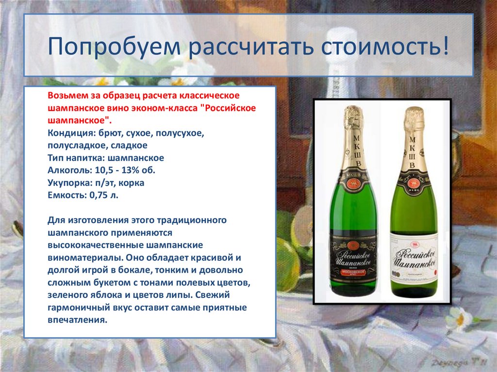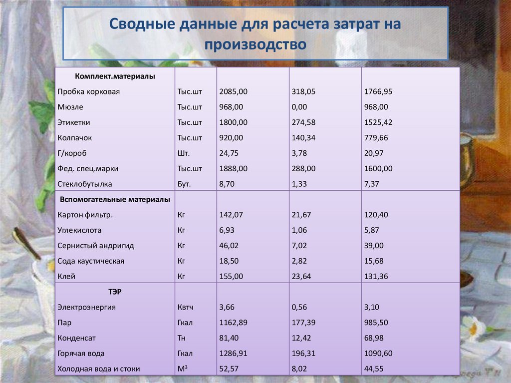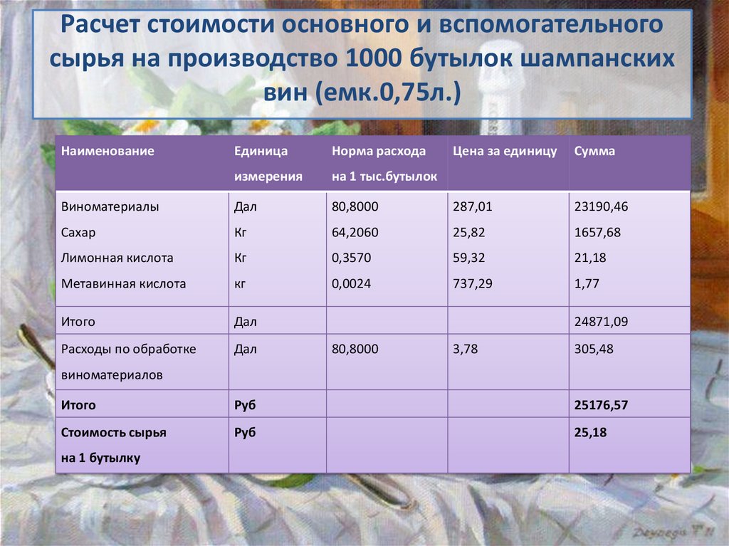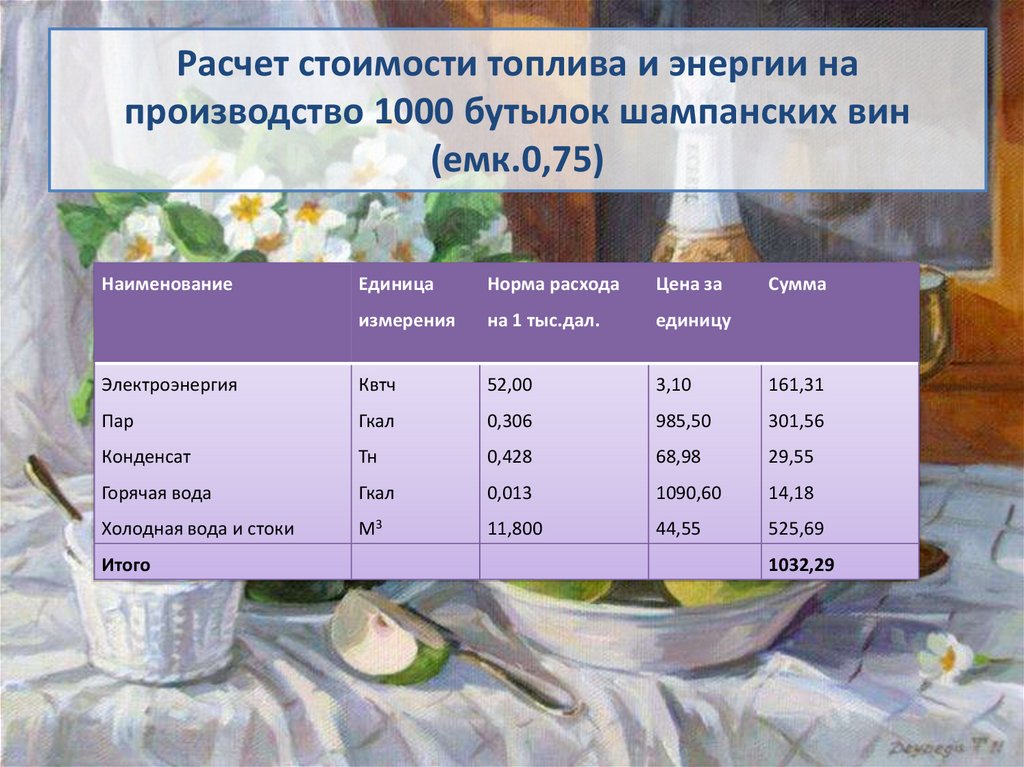 Расчет стоимости топлива и энергии напроизводство 1000 бутылок шампанских вин