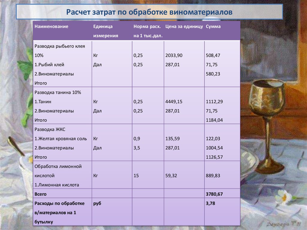 Особенности учета затрат и калькулированияв алкогольной промышленности на примере