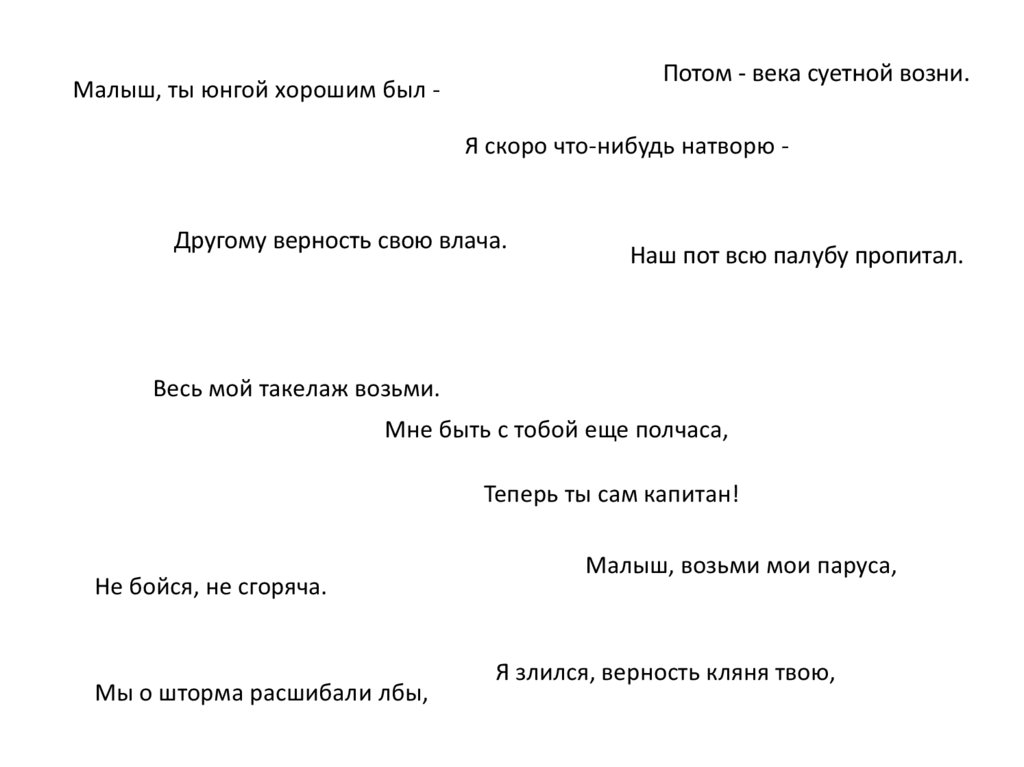Потом - века суетной возни.Малыш, ты юнгой хорошим был -