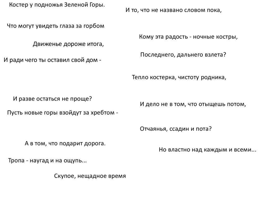 Костер у подножья Зеленой Горы.И то, что не названо словом пока,