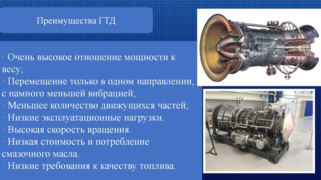 Преимущества ГТД· Очень высокое отношение мощности к