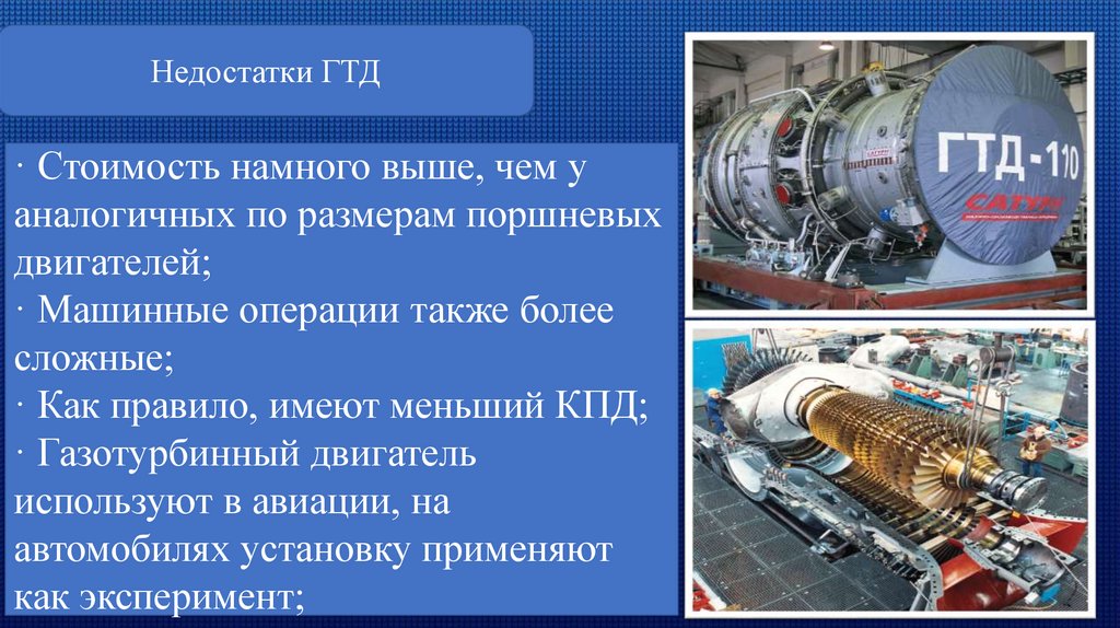 Недостатки ГТД· Стоимость намного выше, чем у