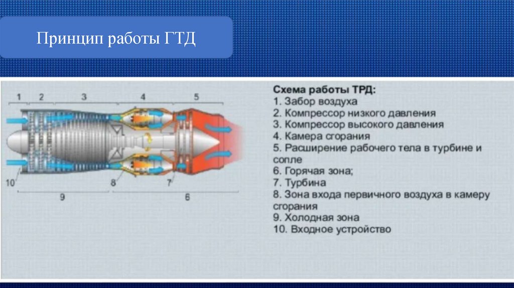 - Изучить строение и схему работы ГТД.
