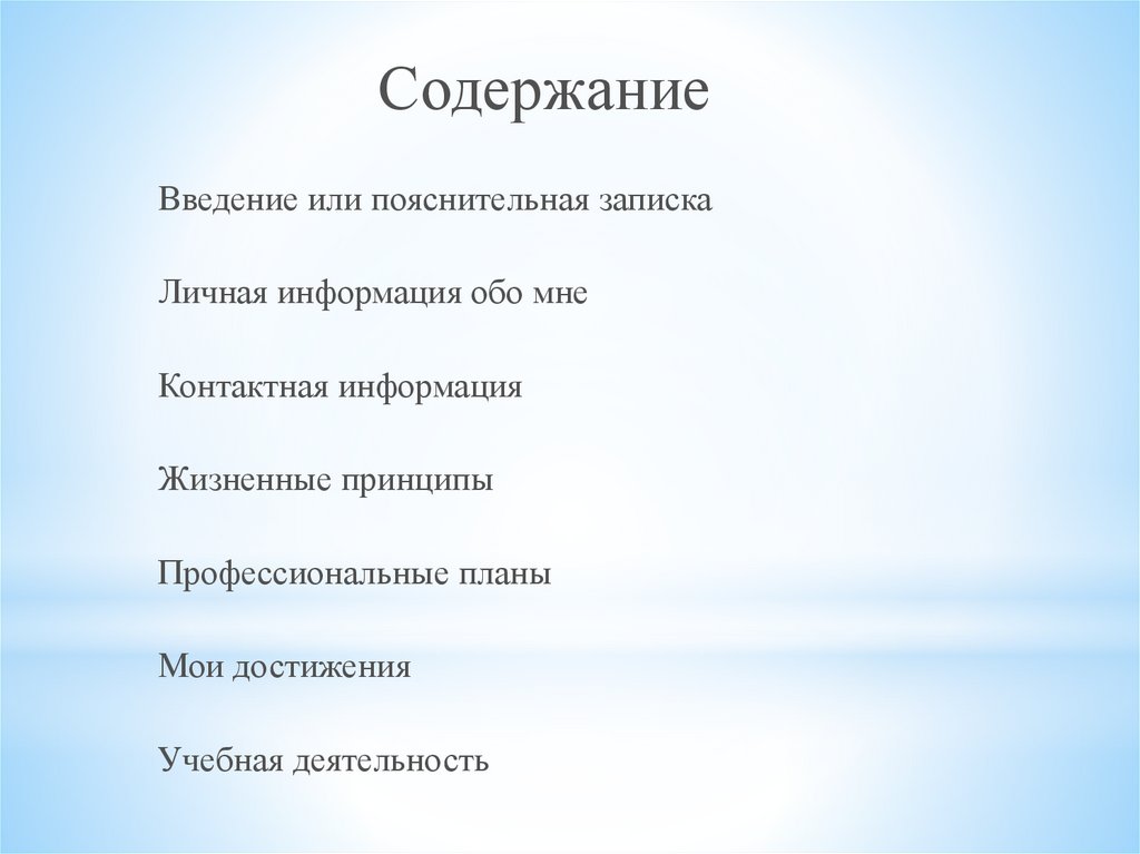 СодержаниеВведение или пояснительная записка