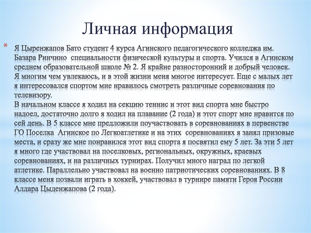 Личная информация обо мне