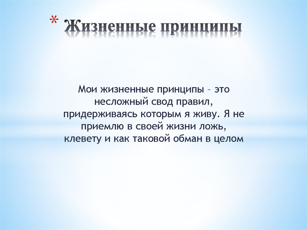 *Мои жизненные принципы – это