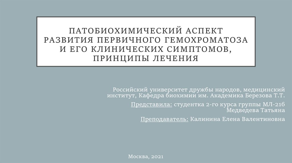 Патобиохимический аспект развития первичного гемохроматоза и его клинических симптомов