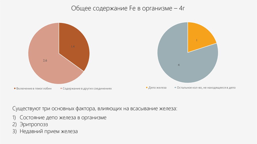 Общее содержание Fe в организме – 4г1