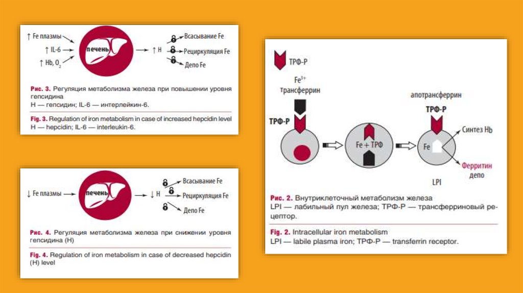А | У пациентов с гепцидин-дефицитнымБ | При болезни ферропортина (гемохроматоз 4-го