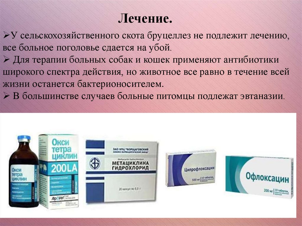 Лечение.У сельскохозяйственного скота бруцеллез не подлежит лечению,