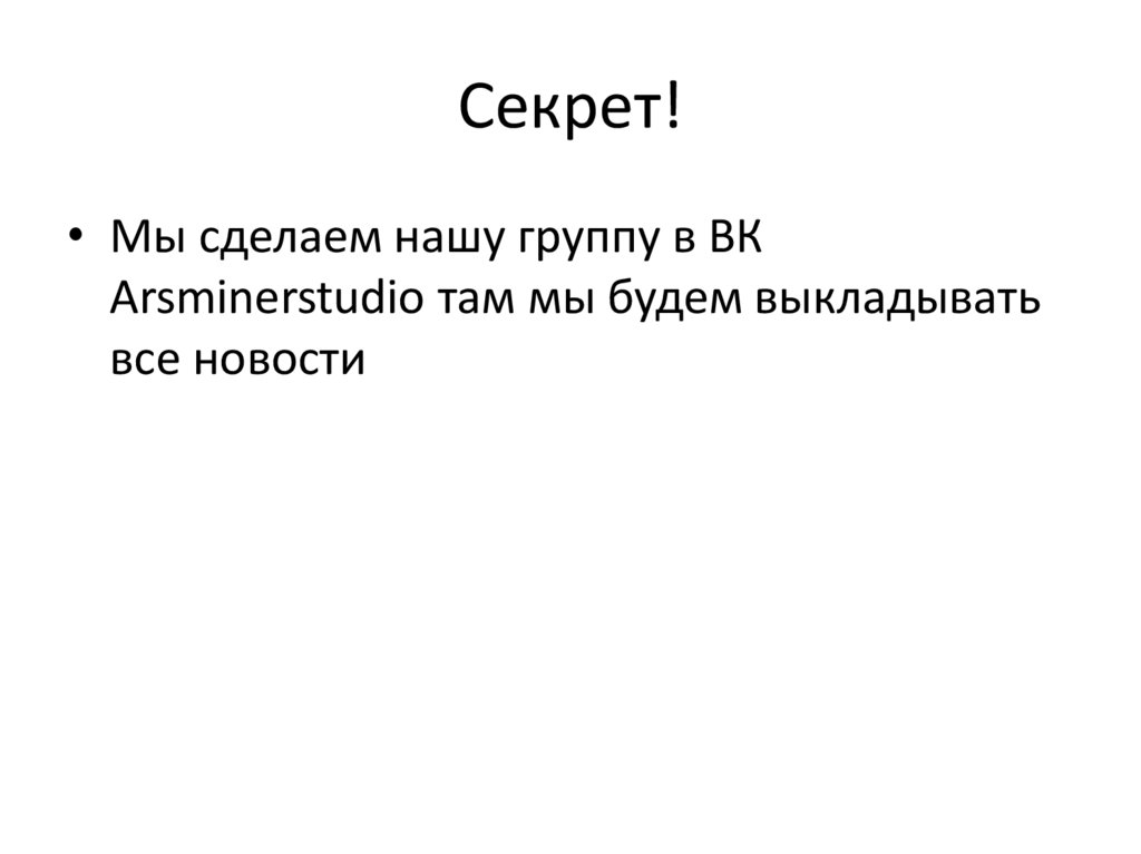 Секрет!• Мы сделаем нашу группу в ВК
