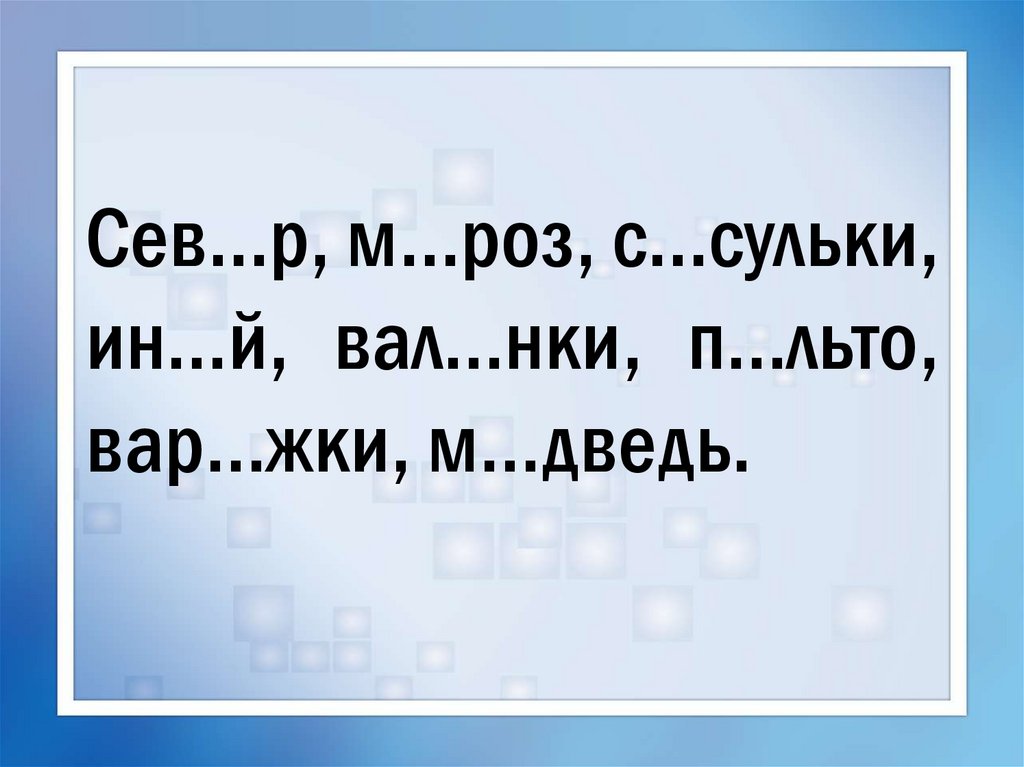 Сев…р, м…роз, с…сульки,ин…й, вал…нки, п…льто,