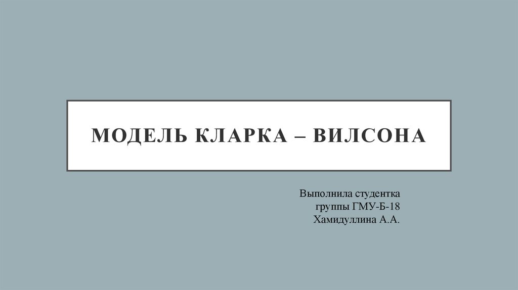 МОДЕЛЬ КЛАРКА – ВИЛСОНАВыполнила студентка
